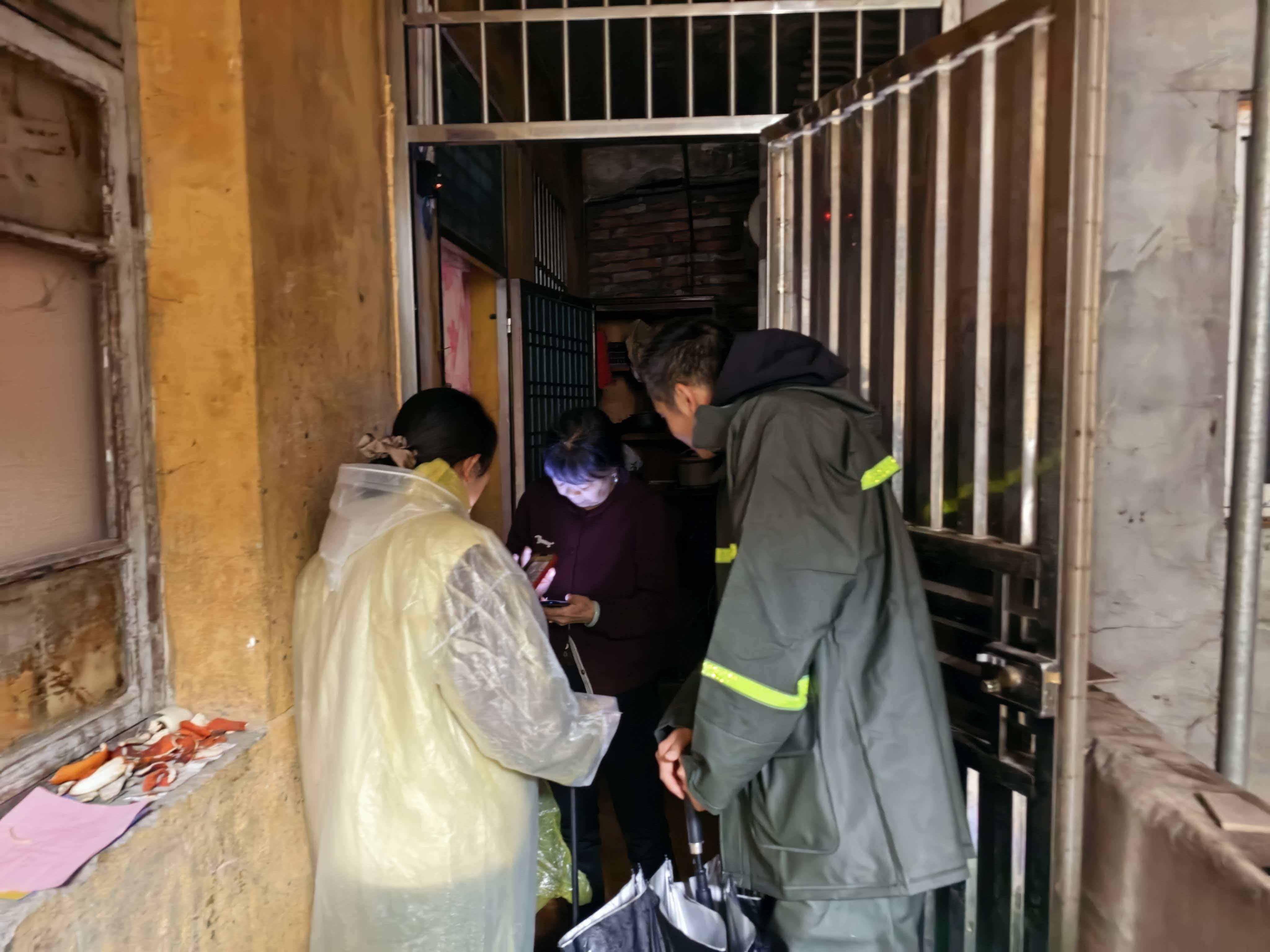 在全力处置积水隐患的同时,网格员们始终牵挂着辖区独居老人、空巢老人这一特殊群体,担心暴雨天气导致老人家中漏雨、电路受潮、出行受阻。疏通工作间隙,网格员们带着提前准备的防汛温馨提示,逐一走进独居老人家中,细致排查老人房屋屋顶、墙面、窗户是否存在漏雨情况,仔细检查室内电路、水管是否安全正常,耐心询问老人的生活需求和身体状况,反复叮嘱老人暴雨期间尽量不要外出,关好门窗、注意用电安全,并留下联系电话,让老人们遇到任何困难第一时间联系网格员。