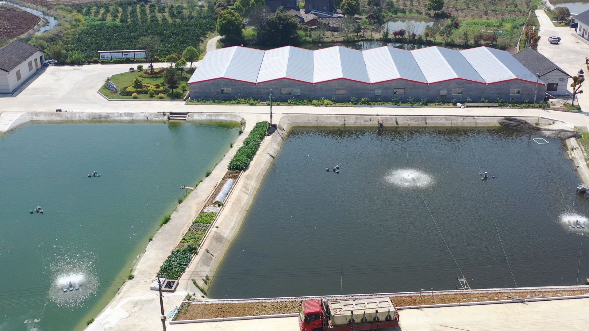 为精准契合市场需求、持续提升肥鱼品质,康益水产创新采用“吊水瘦身”养殖模式,并同步打造循环利用生态系统,实行分水处理——表层水经生态沟渠净化,底层水入集中处理池沉淀,二者汇合后再经生态净化池降解,清水回流循环。贺必云表示:“后面我们准备跟‘中国绿仓’合作,用环保、绿色的饲料来养绿色的鱼。”