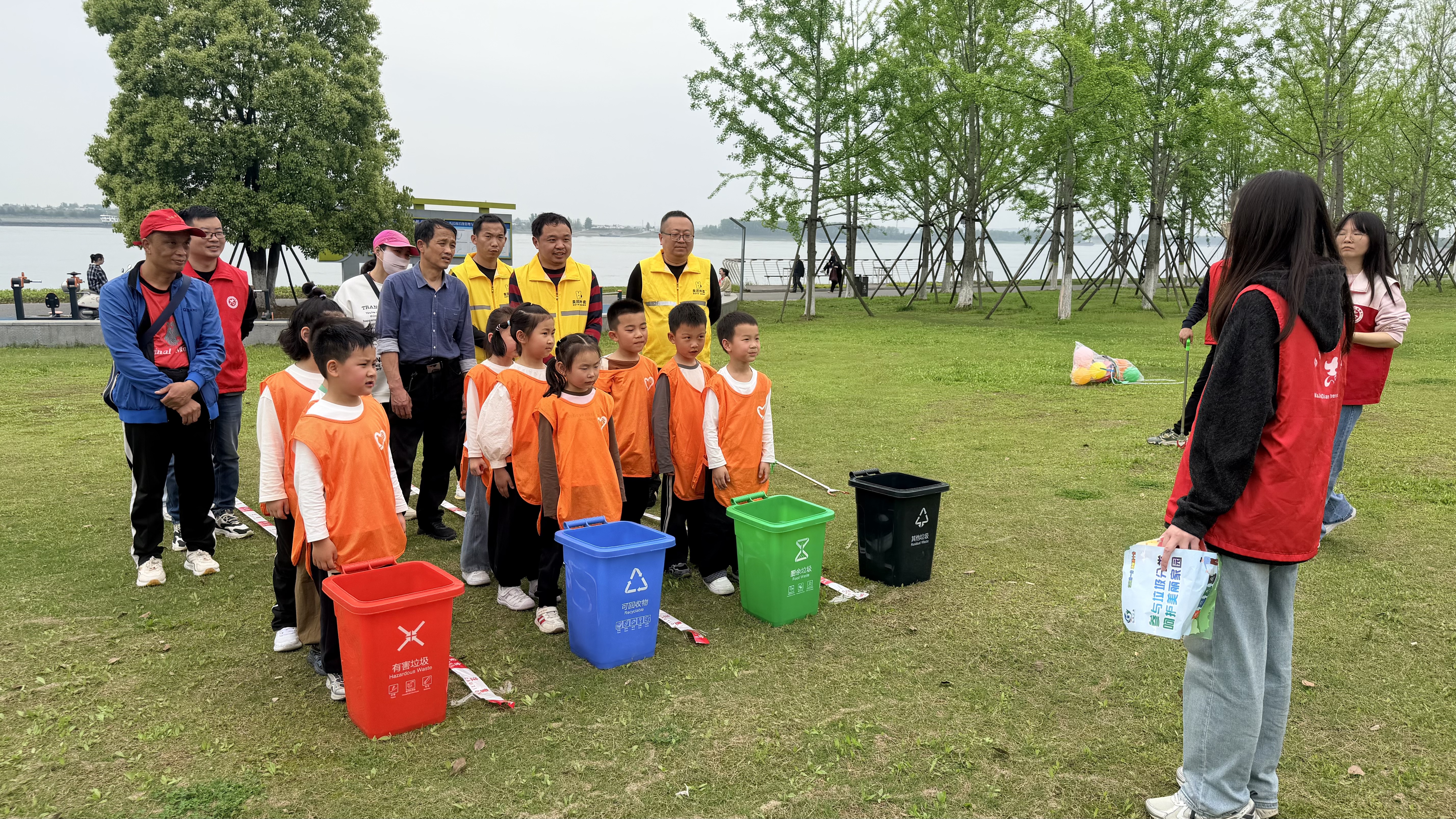 下午2时30分,身着各色志愿马甲的参与者们分散到江岸各处,投入到净滩行动中。友谊路幼儿园的孩子们在老师的陪伴下,手持夹钳沿步道仔细捡拾烟头、纸屑;残疾人朋友与来自新就业群体的志愿者们协同配合,对草坪、滩涂区域的塑料瓶等隐蔽垃圾展开地毯式清理。