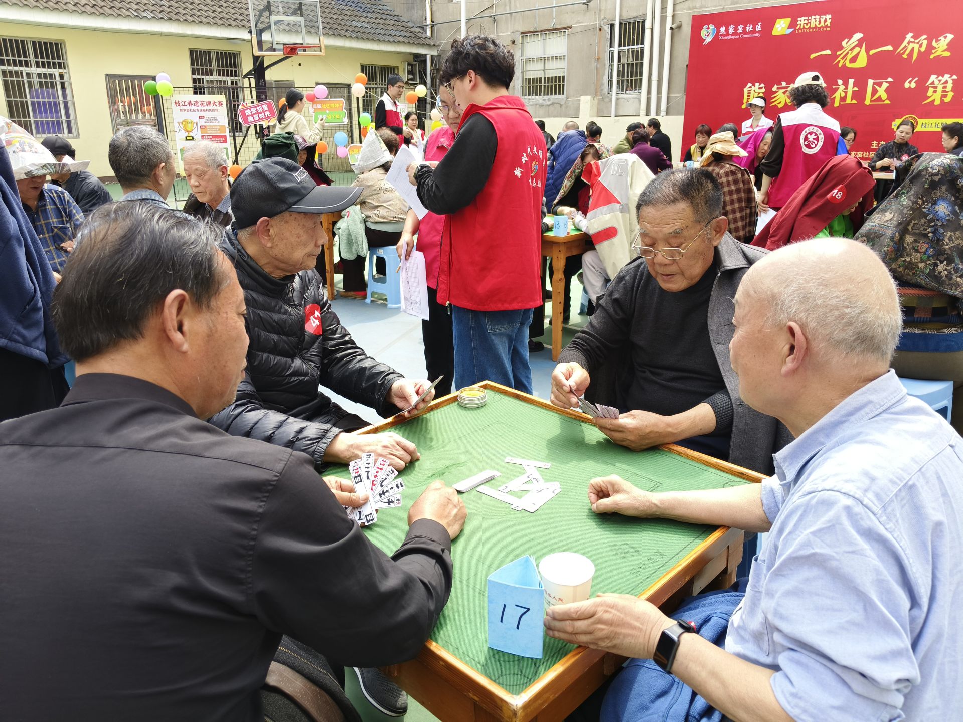 比赛现场,参赛选手们全神贯注,熟练地拿牌、理牌、出牌,在方寸牌桌间切磋技艺、斗智斗勇,现场既有紧张有序的竞技氛围,又充满邻里间的欢声笑语。比赛采用四人一桌、淘汰赛制,历经四轮比拼,评选出一、二、三等奖及优秀奖和参与奖。