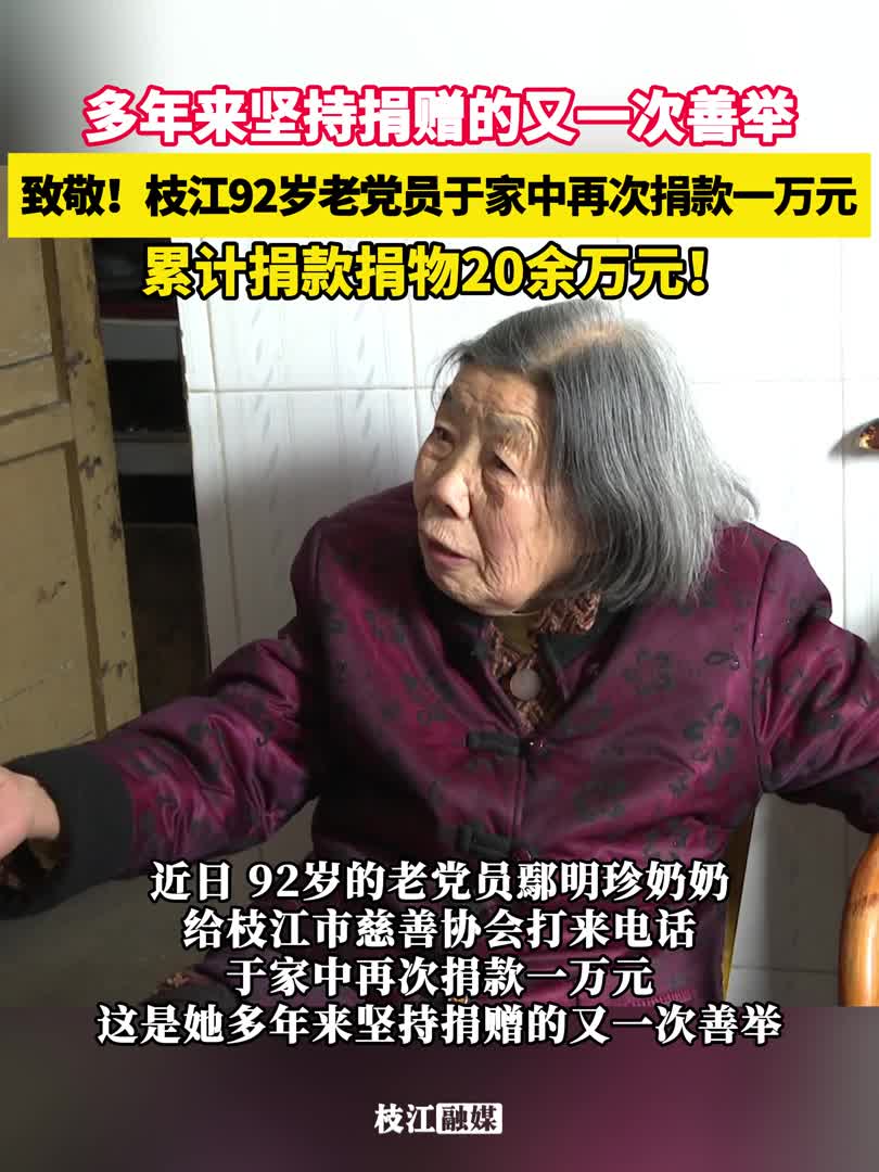 致敬!枝江92岁老党员鄢明珍奶奶再次捐款一万元,多年坚持捐赠的又一次善举!