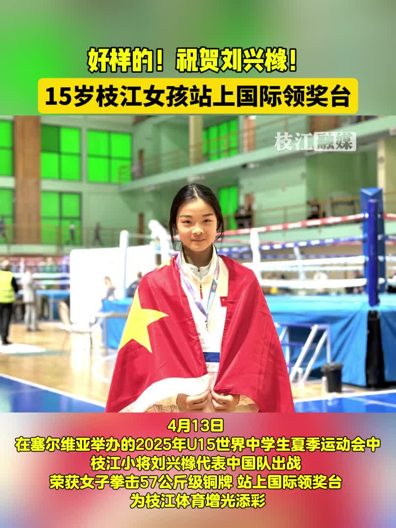 祝贺刘兴橼!15岁#枝江 女孩站上国际领奖台!