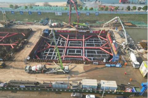 枝江长江大桥桥墩承台浇筑进行时