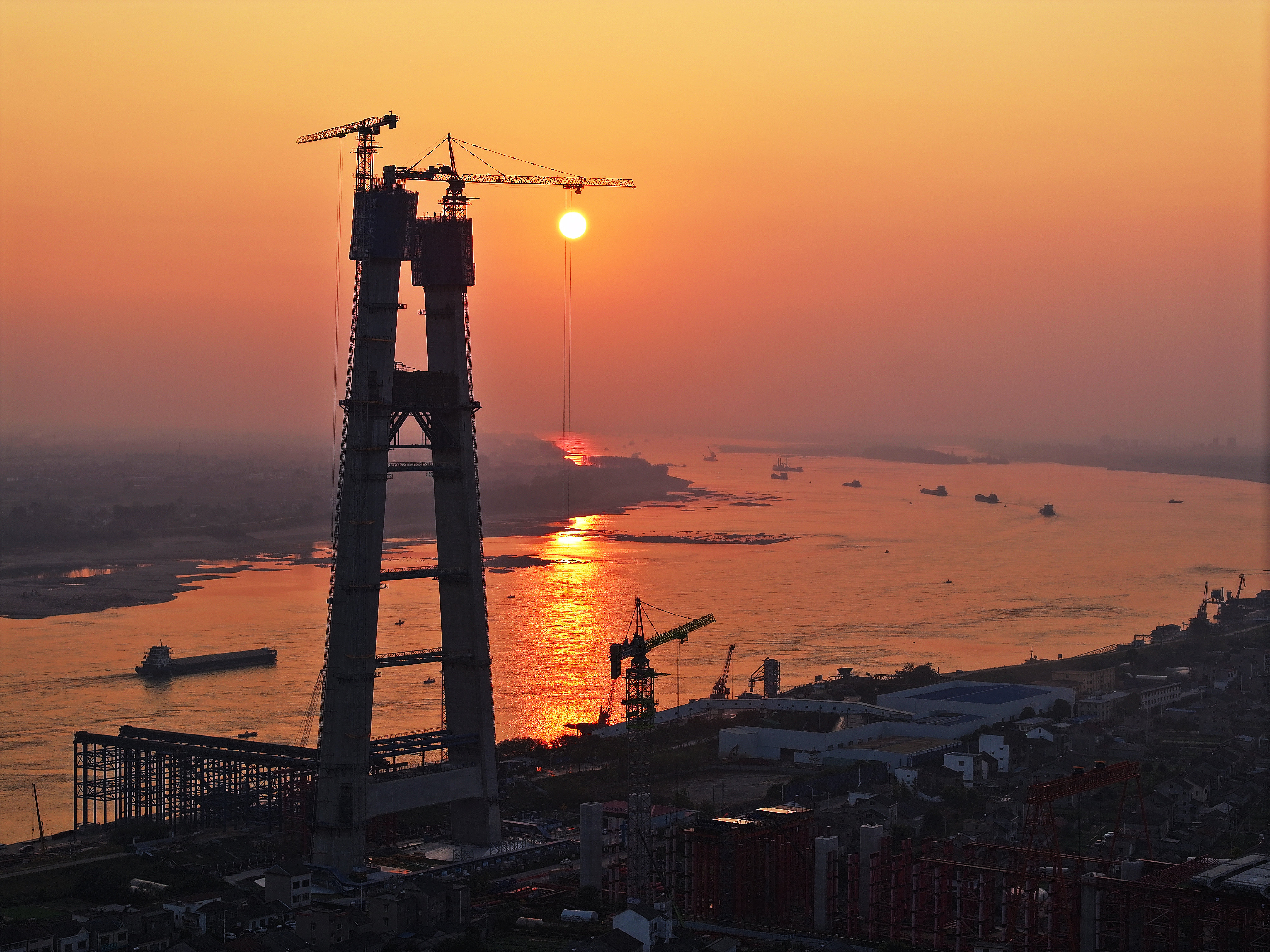 南主塔封顶!枝江长江大桥年底合龙